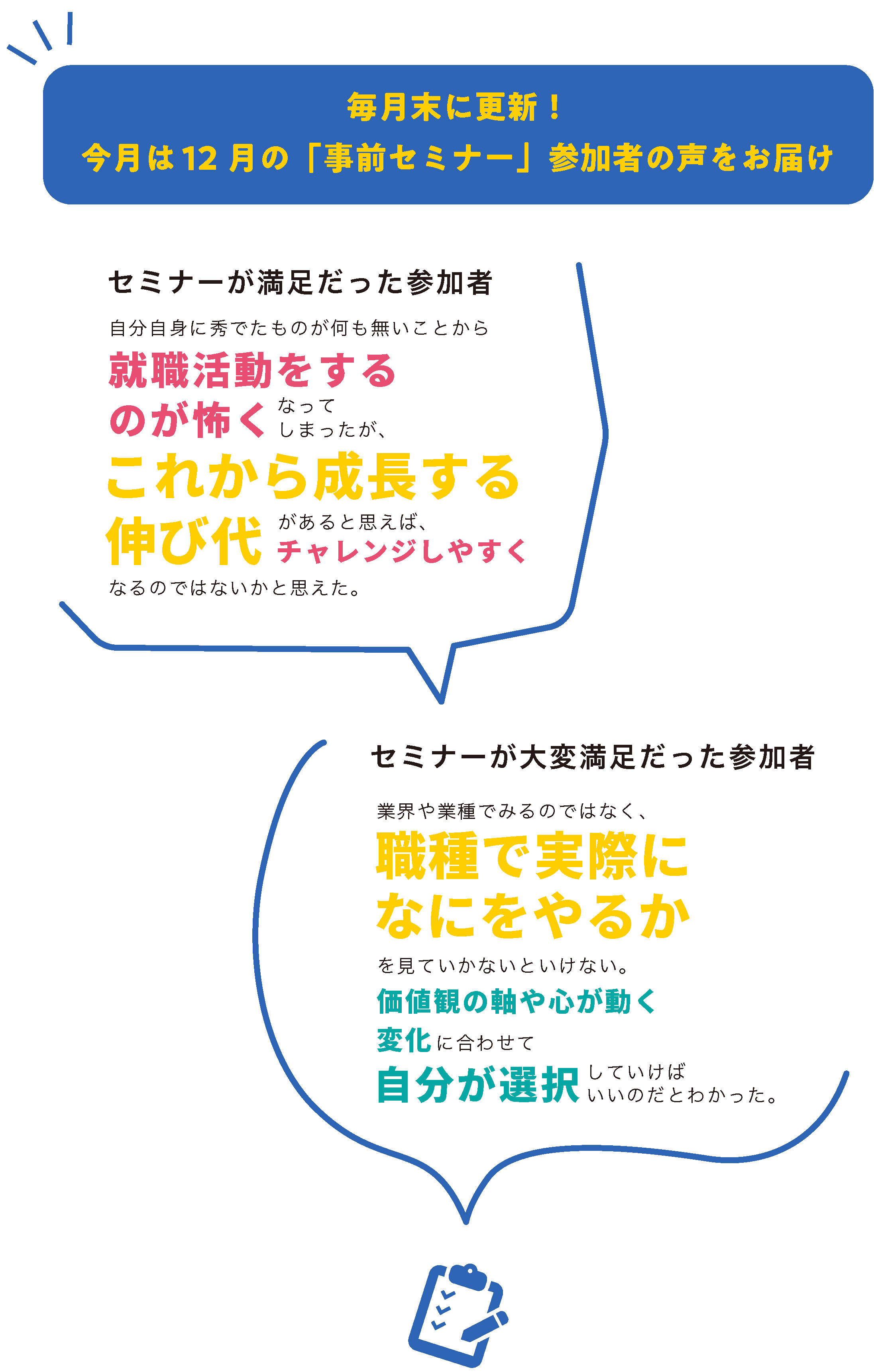 ※説明会・セミナー等は、災害等やむを得ない事情によって、中止や延期になることがあります。