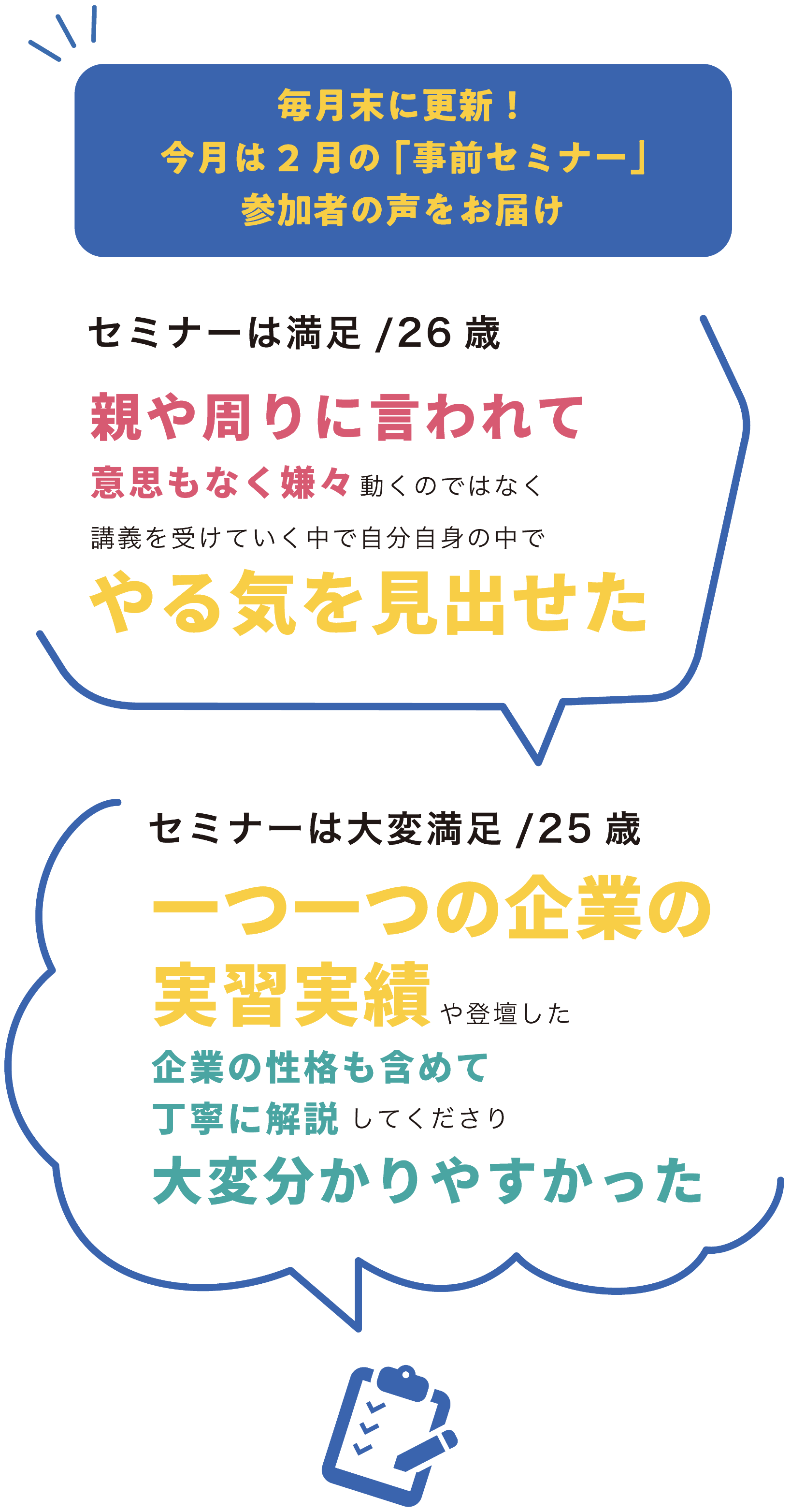 説明会やセミナー参加者のアンケートから、